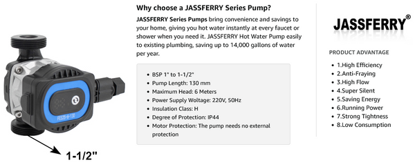 JASSFERRY New A-Rated Central Heating Pump Energy-saving Hot Water Circulation -FES