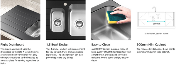 - - Bowl Dimensions:: 400 x 400 mm, 300 x 170 mm (L x W)