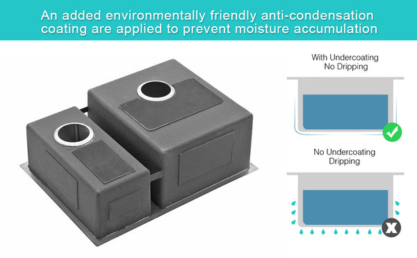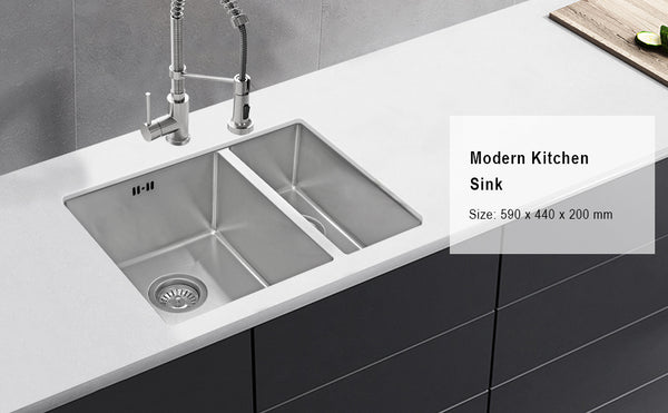 ❥ DEMENSIONS: Sink Size: 590x440x200 mm (L x W x D), Large bowl: 400x340 mm, Small bowl: 400x180 mm