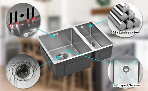 ❥ STAINLESS STEEL SINK: Made of 1.2 mm thickness stainless steel with a satin finish, durable and corrosion-resistant