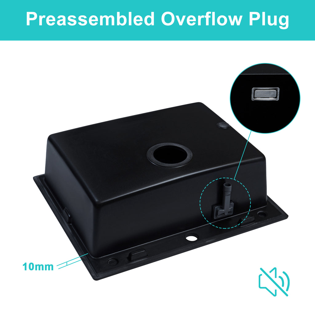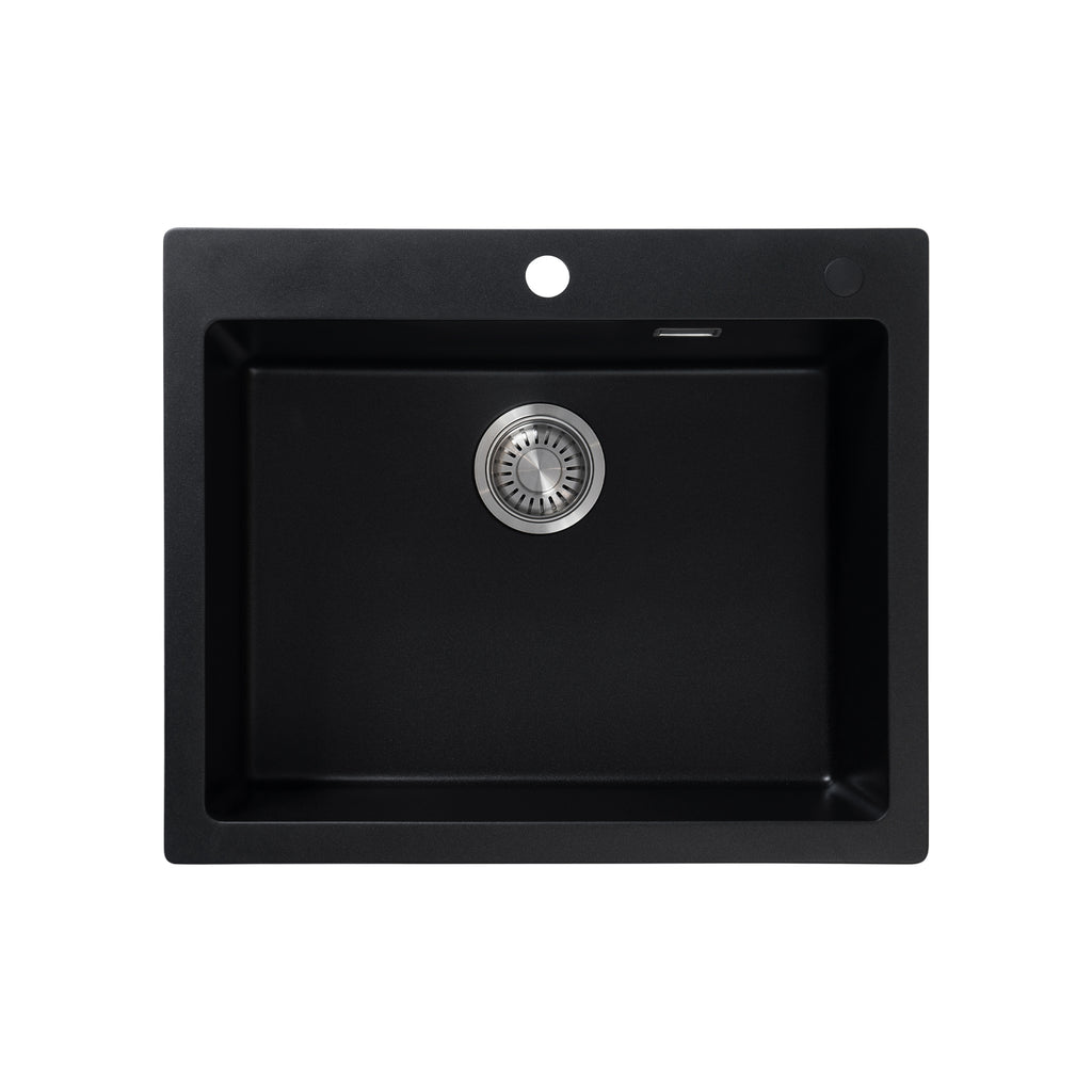 JASSFERRY Black Composite Kitchen Sink Drop-in Deep Single Bowl with Waste -6151