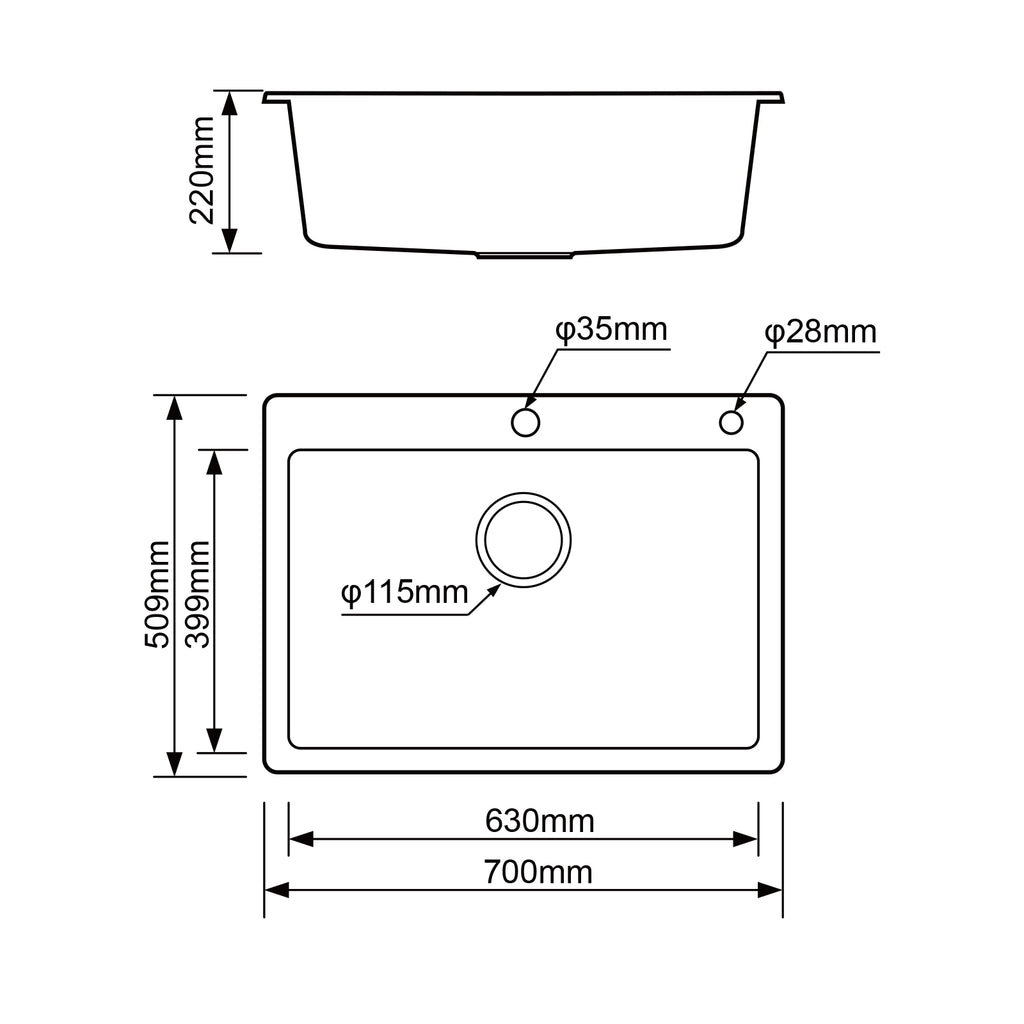 - - Bowl Dimensions: 630 x 399 mm